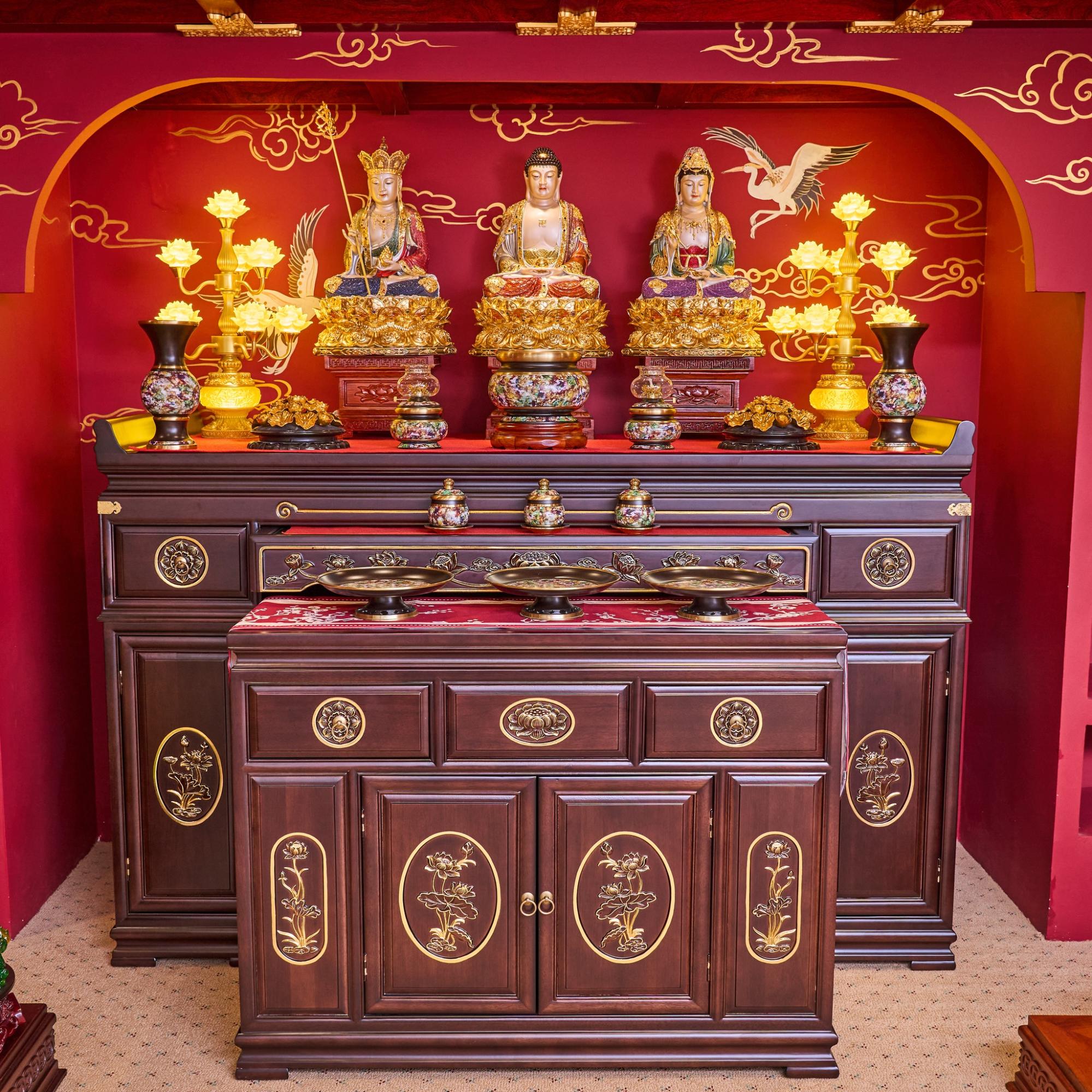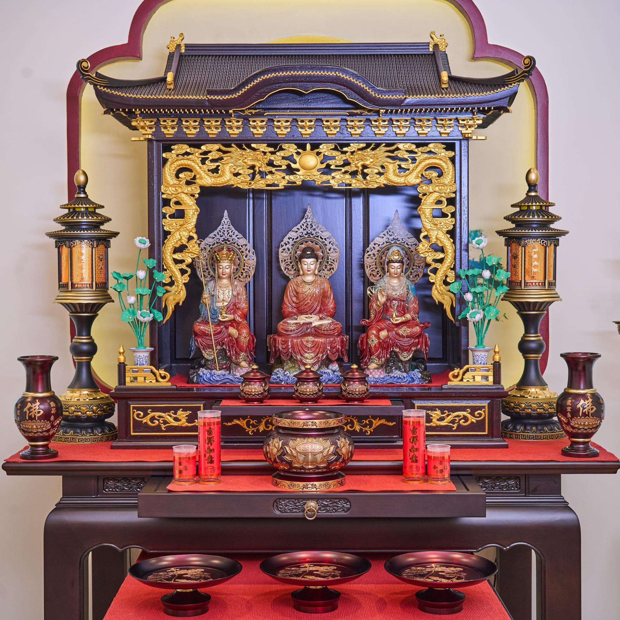 Ban thần tài gỗ Hồng Sắc Mái Chùa màu Nâu đỏ