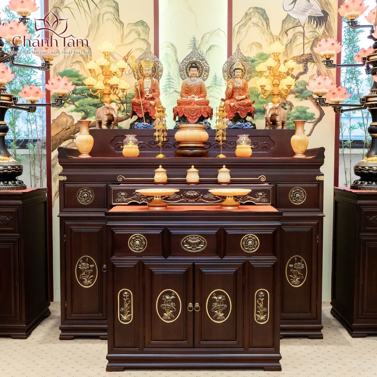 Trọn Bộ Tôn Tượng Phật Tọa Đài Sen Lá Đề Đồng