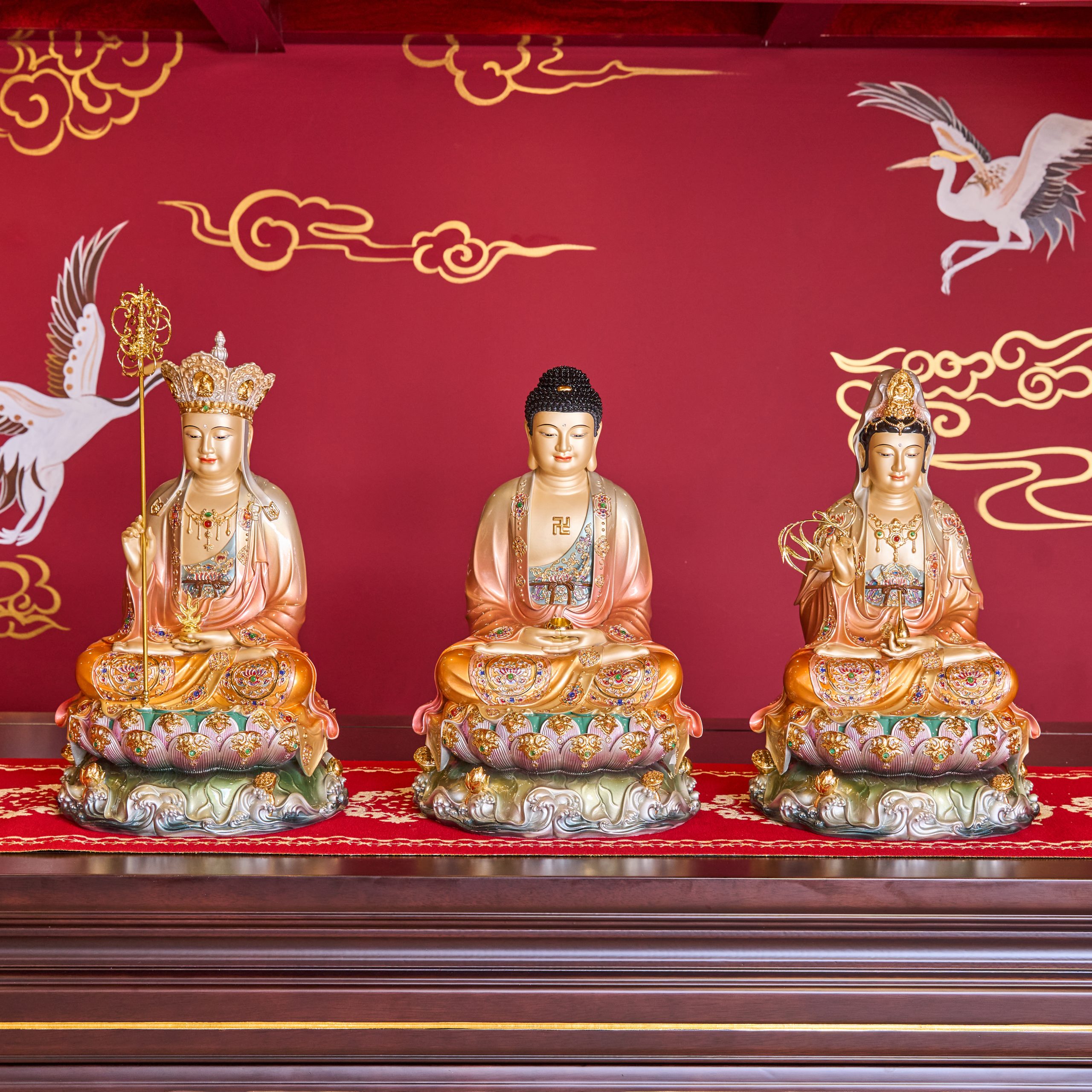Tôn Tượng Ta Bà Tam Thánh, hay còn gọi Sa Bà Tam Thánh, bao gồm ba vị là Phật Thích Ca Mâu Ni, Quán Thế Âm Bồ Tát và Địa Tạng Vương Bồ Tát. Đây là ba vị tượng trưng cho chân lý, từ bi, hiếu đạo ở thế giới Ta Bà, giúp chúng sinh chuyển hoá đau khổ, tìm về cuộc sống an yên, hạnh phúc. Bộ tượng Ta Bà Tam Thánh được làm từ chất liệu cao cấp, mang vẻ ngoài bóng đẹp, có tính thẩm mỹ và độ bền cao.