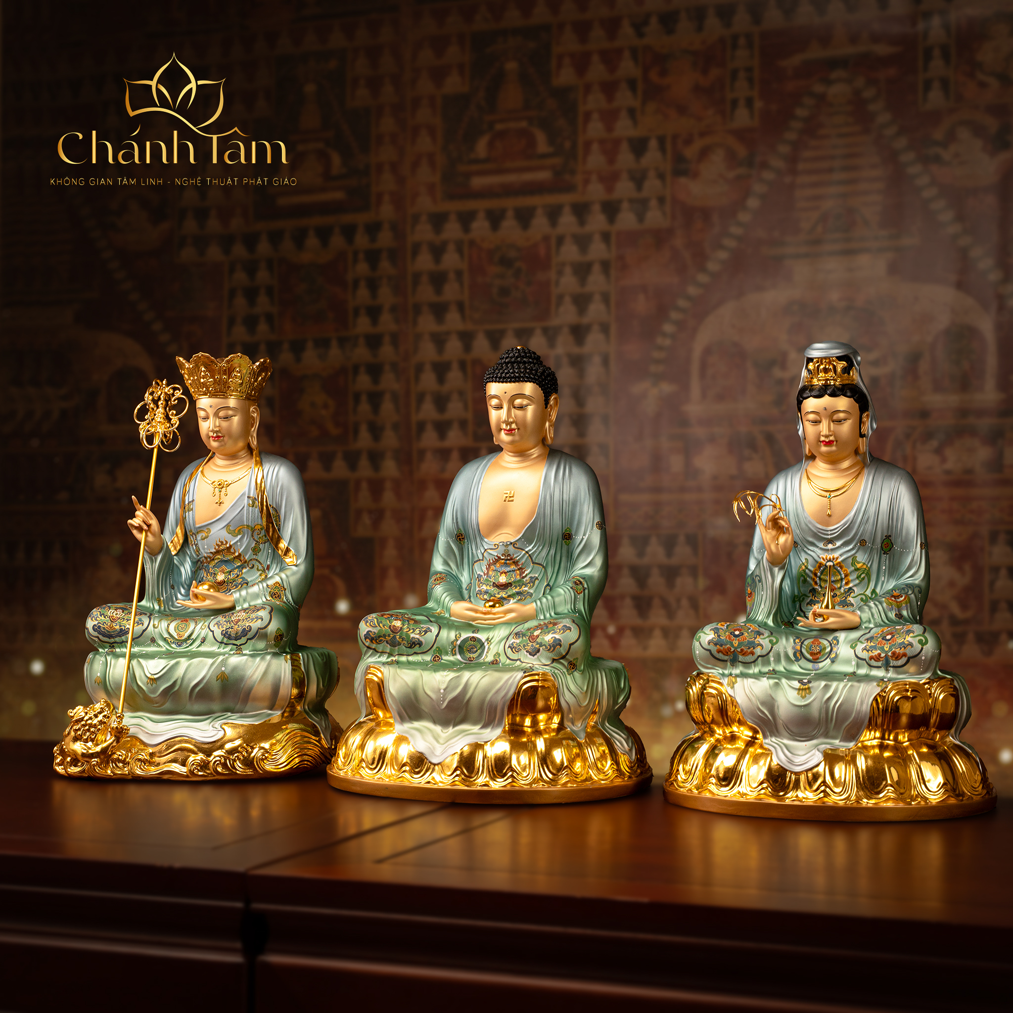 Tôn Tượng Ta Bà Tam Thánh, hay còn gọi Sa Bà Tam Thánh, bao gồm ba vị là Phật Thích Ca Mâu Ni, Quán Thế Âm Bồ Tát và Địa Tạng Vương Bồ Tát. Đây là ba vị tượng trưng cho chân lý, từ bi, hiếu đạo ở thế giới Ta Bà, giúp chúng sinh chuyển hoá đau khổ, tìm về cuộc sống an yên, hạnh phúc. Bộ tượng Ta Bà Tam Thánh được làm từ chất liệu cao cấp, mang vẻ ngoài bóng đẹp, có tính thẩm mỹ và độ bền cao.