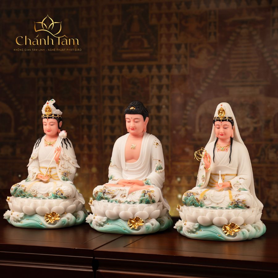 Tôn Tượng Tây Phương Tam Thánh là biểu tượng Phật Giáo quan trọng, nhất là với tín đồ Tịnh Độ Tông. Tây Phương Tam Thánh bao gồm Bồ Tát Quan Thế Âm, Bồ Tát Đại Thế và Đức Phật A Di Đà, là ba vị cai quản cõi Tây Phương Cực Lạc, nơi không có buồn đau, u sầu. Bộ tượng Tây Phương Tam Thánh được làm từ chất liệu cao cấp, mang vẻ ngoài bóng đẹp, có tính thẩm mỹ và độ bền cao.
