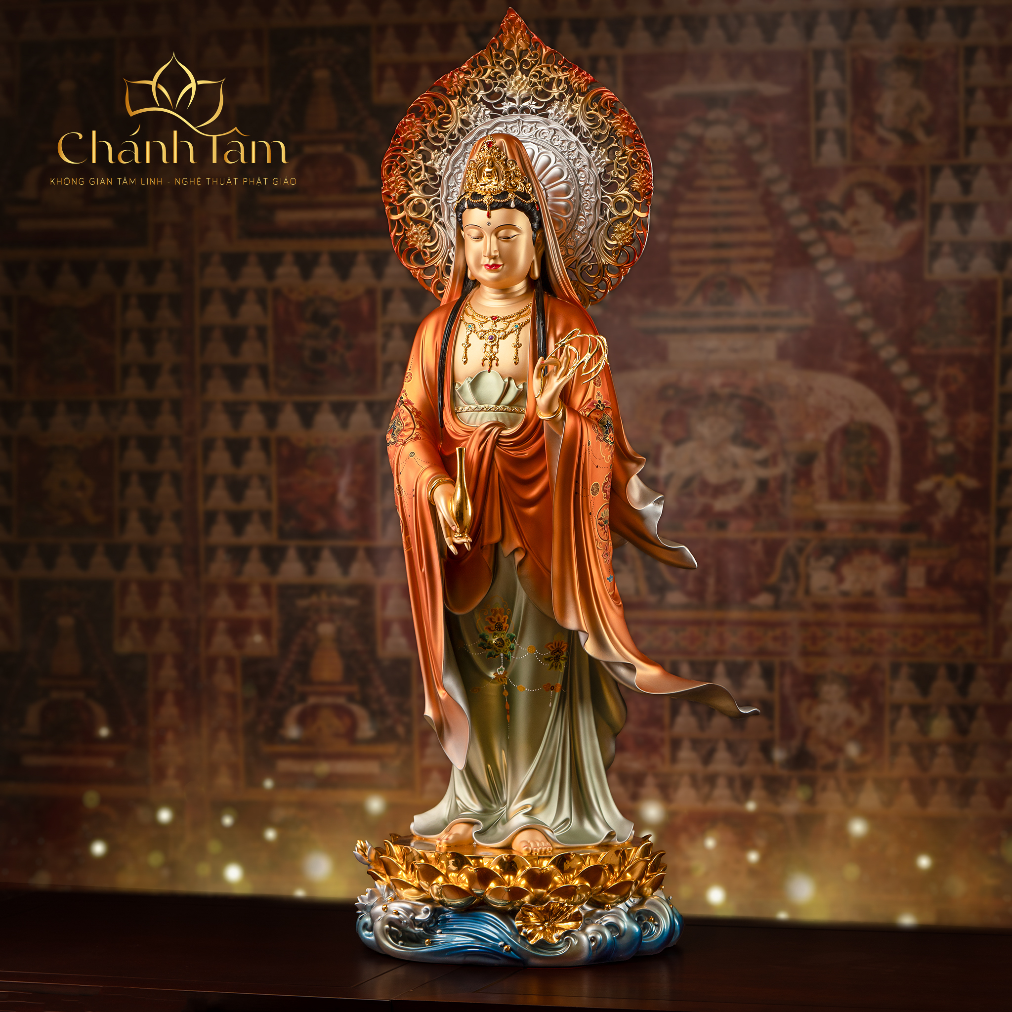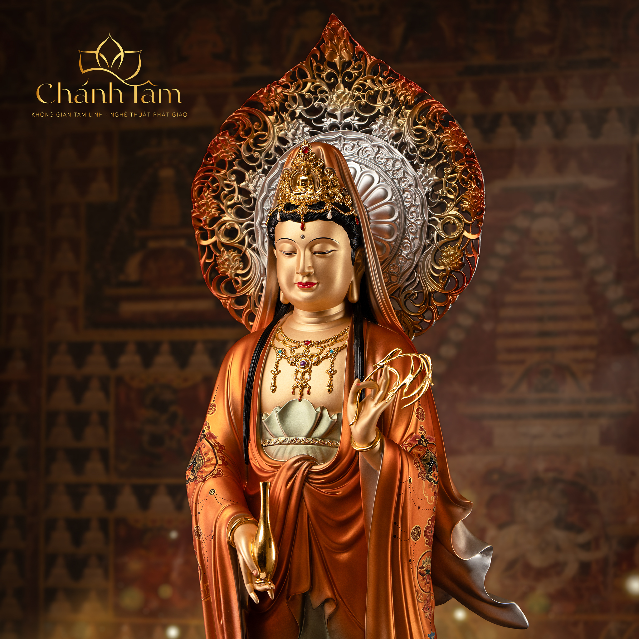 Quán Thế Âm Bồ Tát là một trong những vị Bồ Tát được kính trọng nhất trong Phật Giáo Đại Thừa. Tôn Tượng Quán Thế Âm Bồ Tát là biểu tượng của lòng từ bi vô hạn, sự cứu độ, niềm tin và hy vọng. Tôn Tượng Quán Thế Âm Bồ Tát được làm bằng chất liệu cao cấp, bền đẹp, chạm khắc tinh xảo, tôn lên vẻ hiền từ mà trang nghiêm của Mẹ Quan Âm. Sở hữu Tôn Tượng Quan Âm Bồ Tát trên ban thờ đem đến cho không gian vẻ uy nghiêm, sang trọng, thể hiện lòng thành kính của gia chủ với bậc thánh.