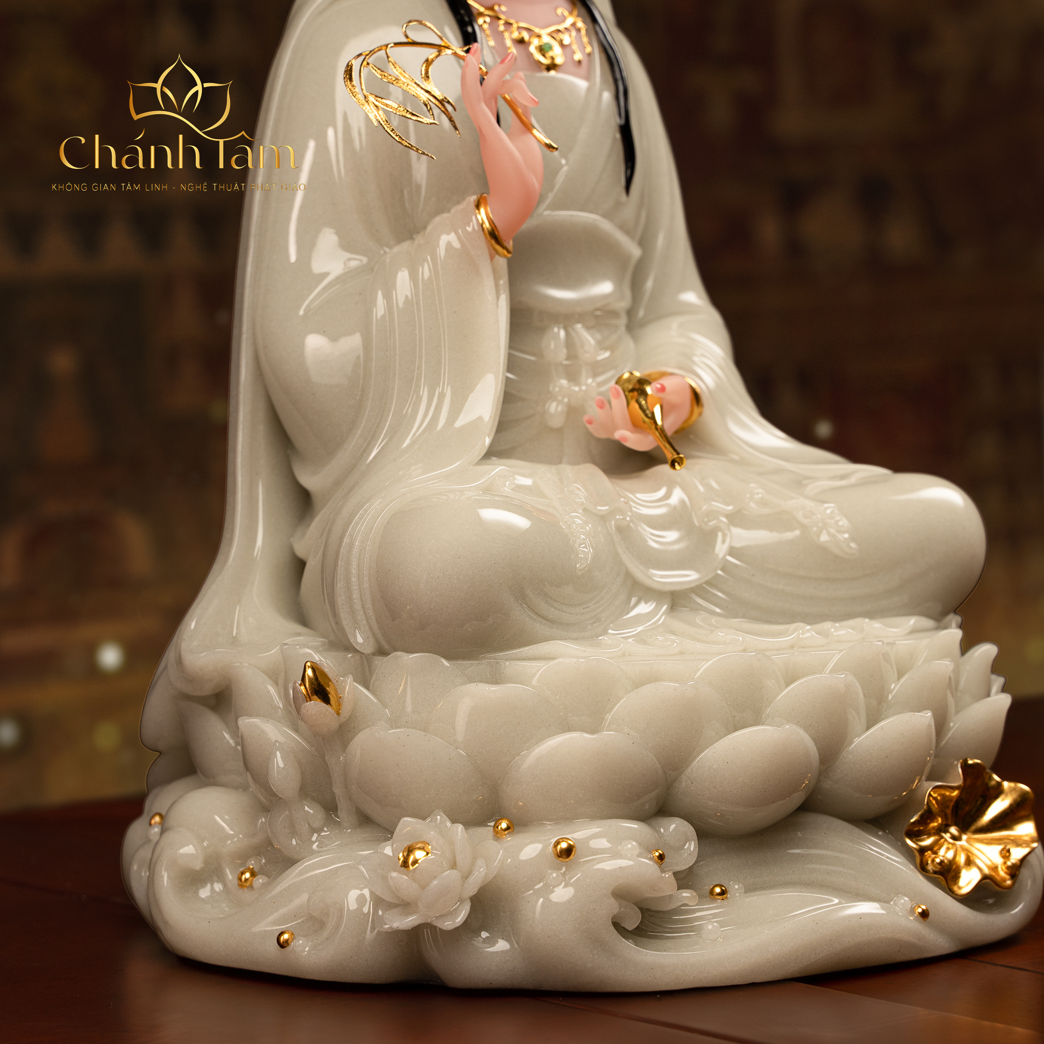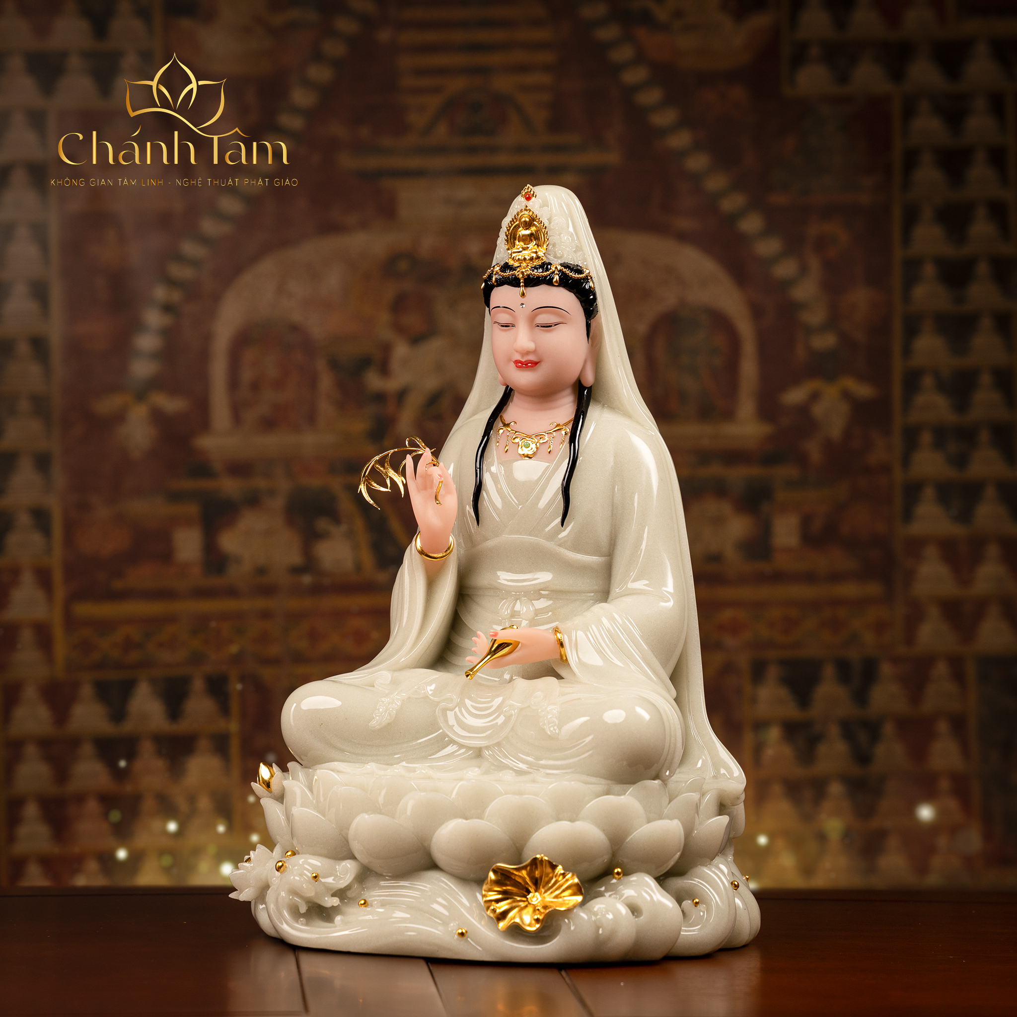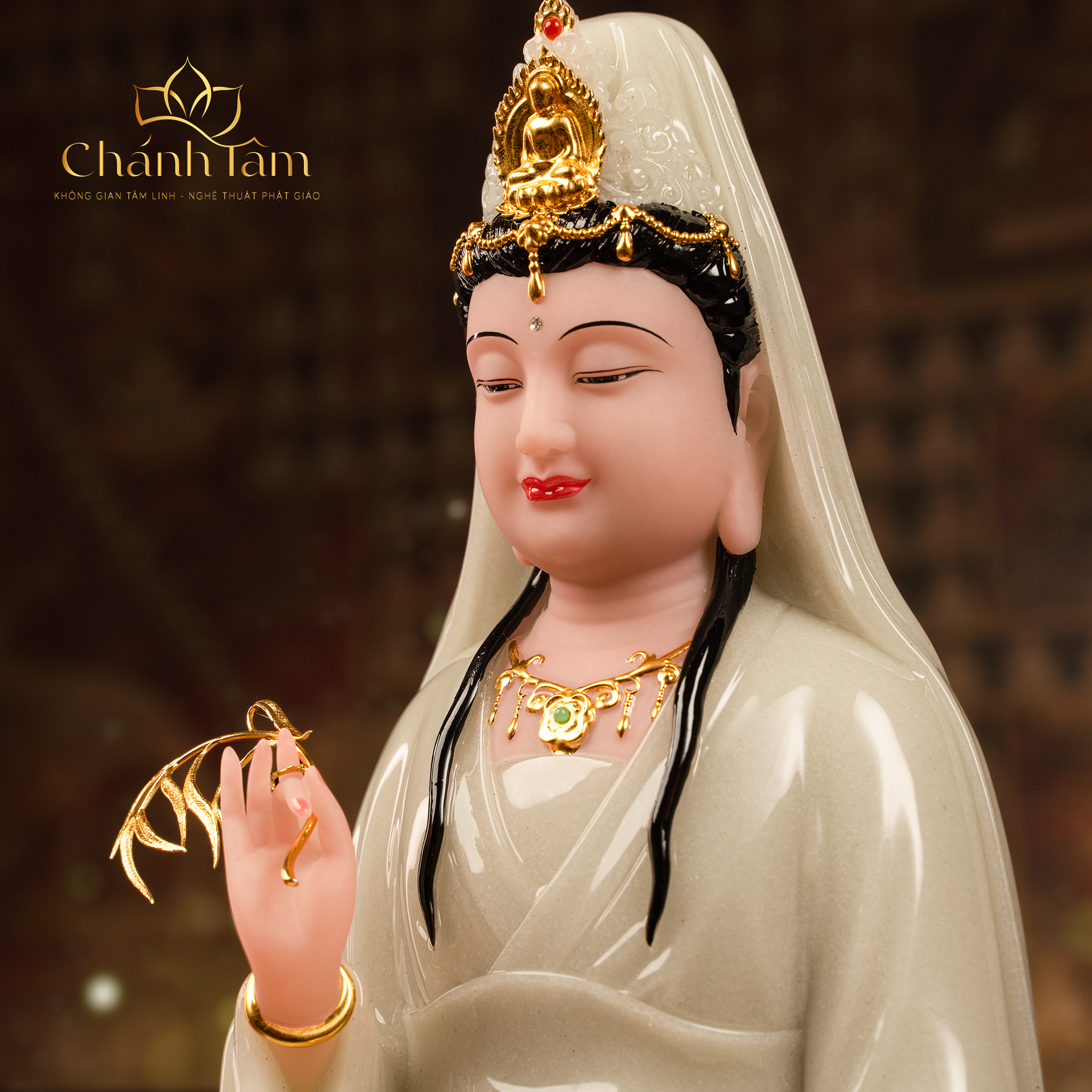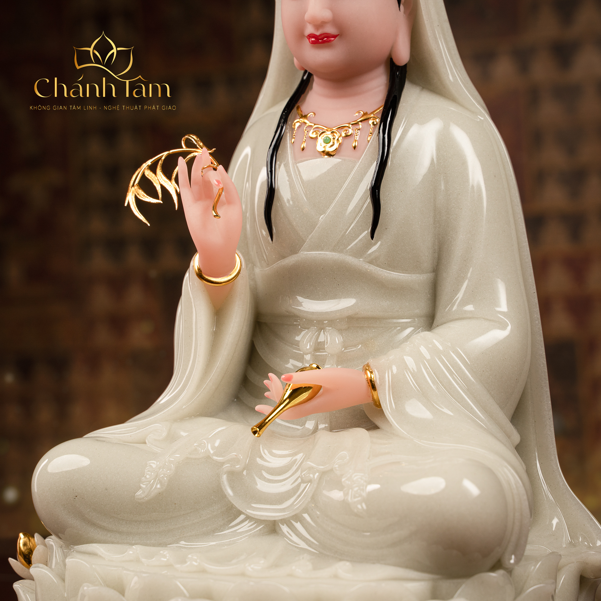 Quán Thế Âm Bồ Tát là một trong những vị Bồ Tát được kính trọng nhất trong Phật Giáo Đại Thừa. Tôn Tượng Quán Thế Âm Bồ Tát là biểu tượng của lòng từ bi vô hạn, sự cứu độ, niềm tin và hy vọng. Tôn Tượng Quán Thế Âm Bồ Tát được làm bằng chất liệu cao cấp, bền đẹp, chạm khắc tinh xảo, tôn lên vẻ hiền từ mà trang nghiêm của Mẹ Quan Âm. Sở hữu Tôn Tượng Quan Âm Bồ Tát trên ban thờ đem đến cho không gian vẻ uy nghiêm, sang trọng, thể hiện lòng thành kính của gia chủ với bậc thánh.
