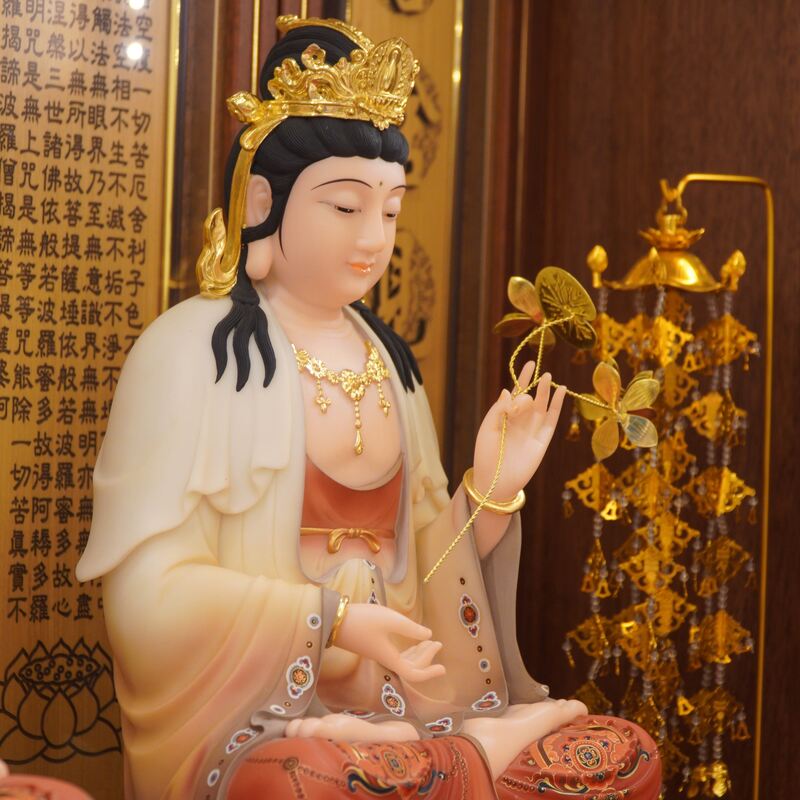 Tôn Tượng Tây Phương Tam Thánh là biểu tượng Phật Giáo quan trọng, nhất là với tín đồ Tịnh Độ Tông. Tây Phương Tam Thánh bao gồm Bồ Tát Quan Thế Âm, Bồ Tát Đại Thế và Đức Phật A Di Đà, là ba vị cai quản cõi Tây Phương Cực Lạc, nơi không có buồn đau, u sầu. Bộ tượng Tây Phương Tam Thánh Đá Thạch Anh Vẽ Gấm được làm từ chất liệu đá thạch anh cao cấp, mang vẻ ngoài bóng đẹp, có tính thẩm mỹ và độ bền cao.